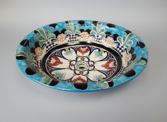 Lavabo Ovalin Artesanal Talavera. Estilo Antiguo. Panchitos.