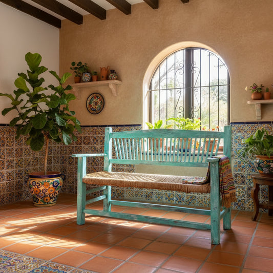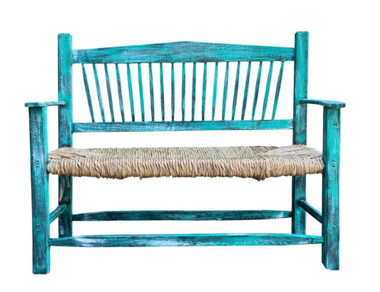 Banca Artesanal 3 Personas Estilo Vintage Antiguo Turquesa.