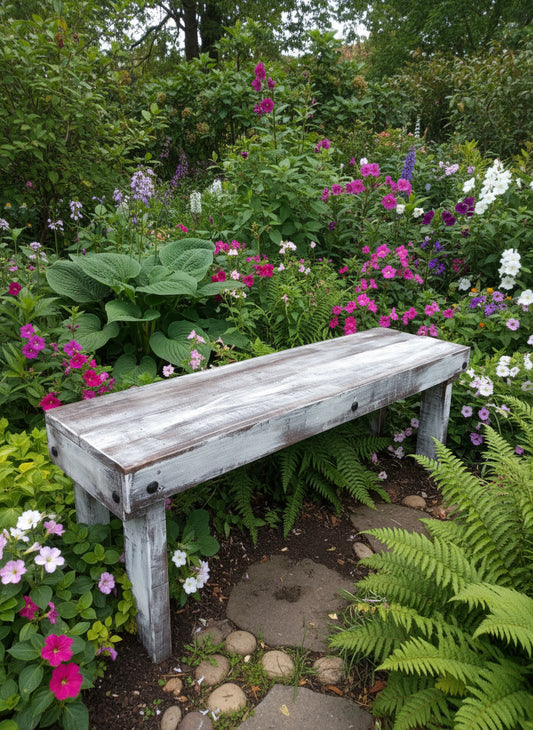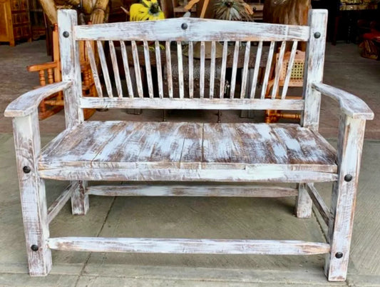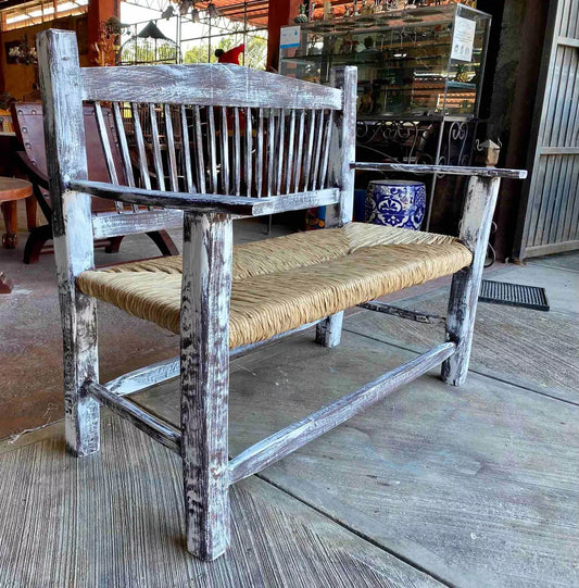Banca Artesanal Vintage Blanca 3 Personas Estilo Antiguo.
