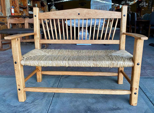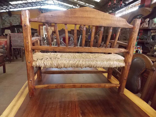 Banca Artesanal Madera Forja Y Tule Estilo Antiguo.