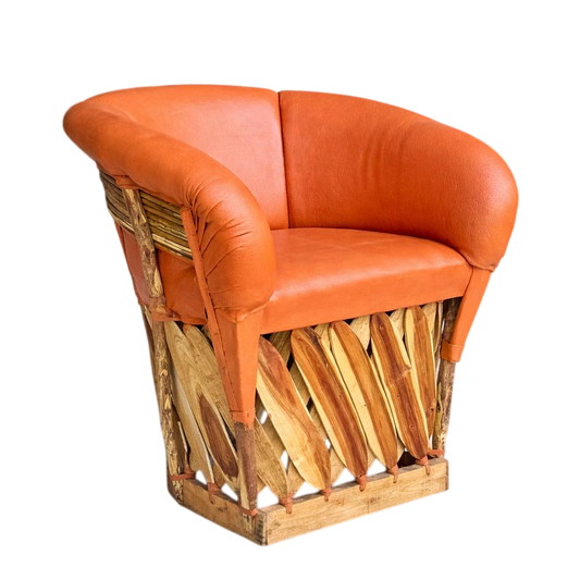 Sala Artesanal Equipal Madera Piel Estilo Antiguo Terracota