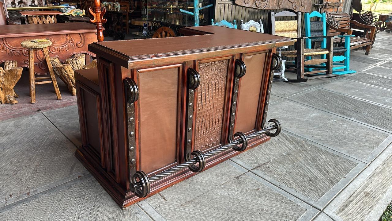 Antigua Original Escritorio De Madera de Encino Y Cedro con Piel de Vaca y cocodrilo
