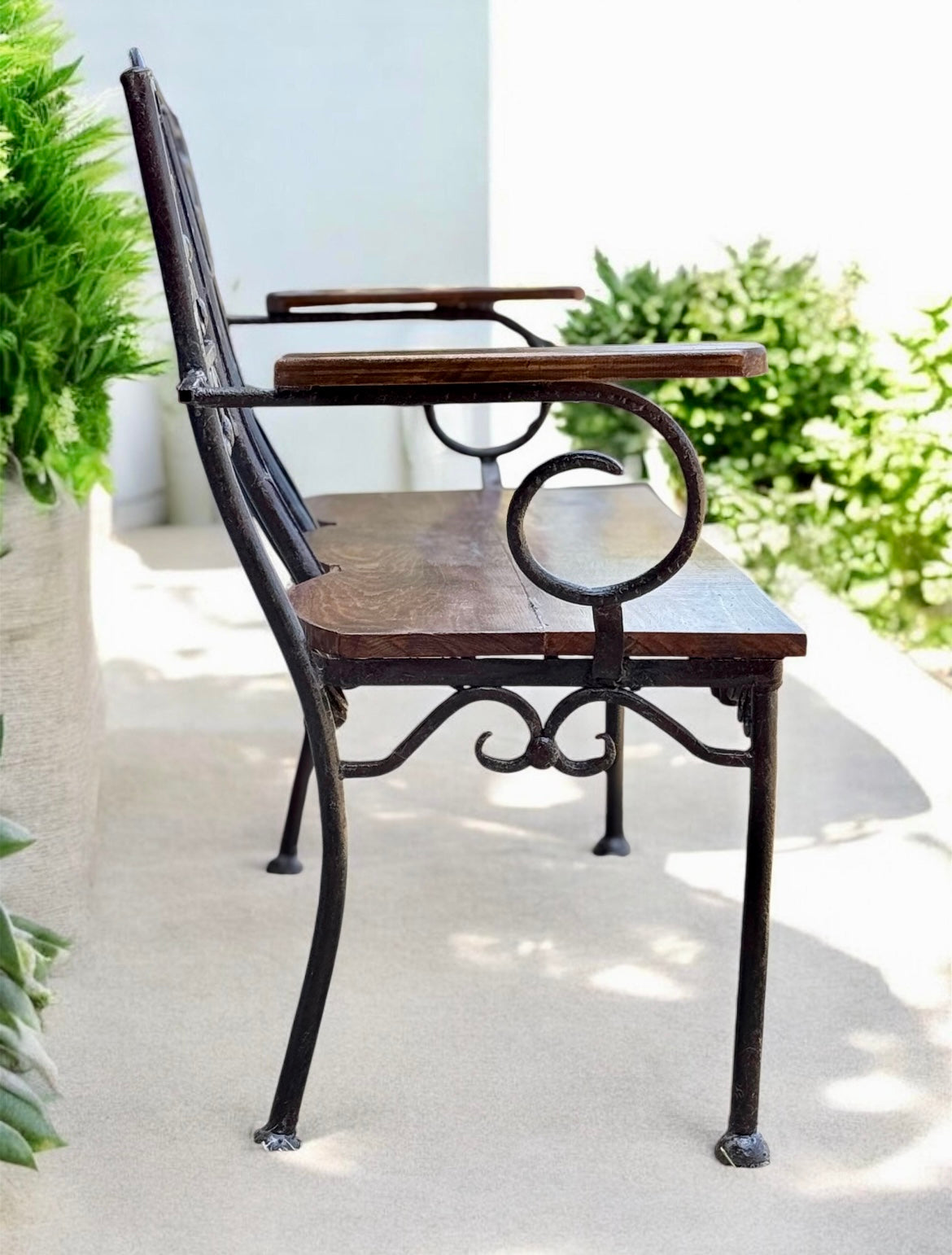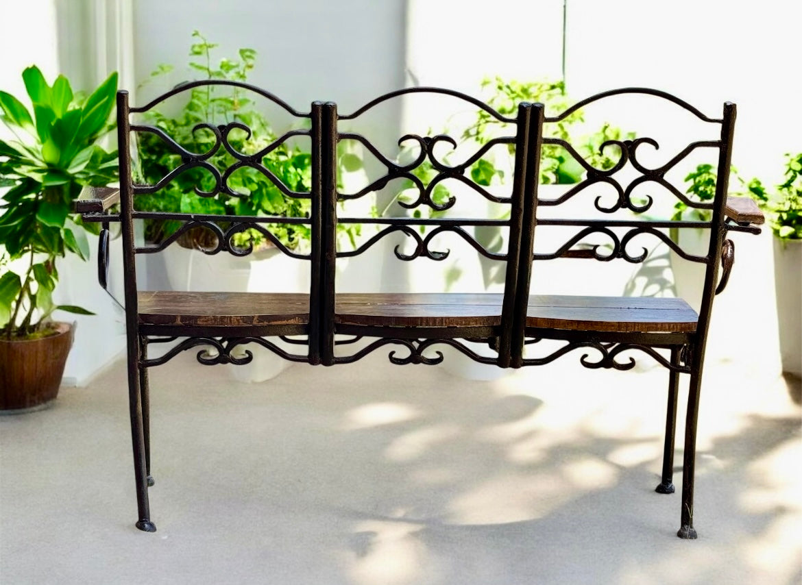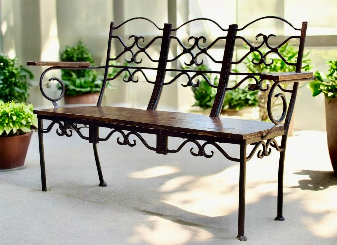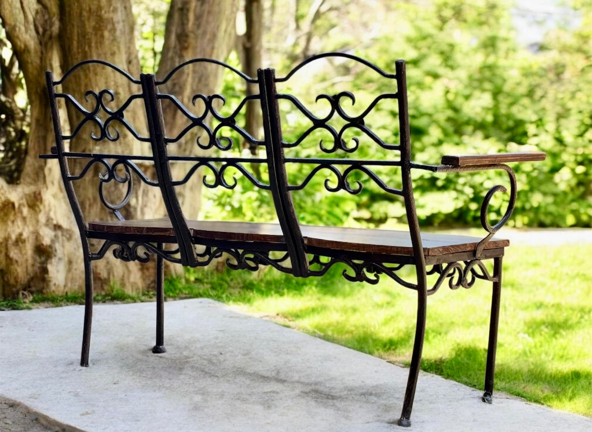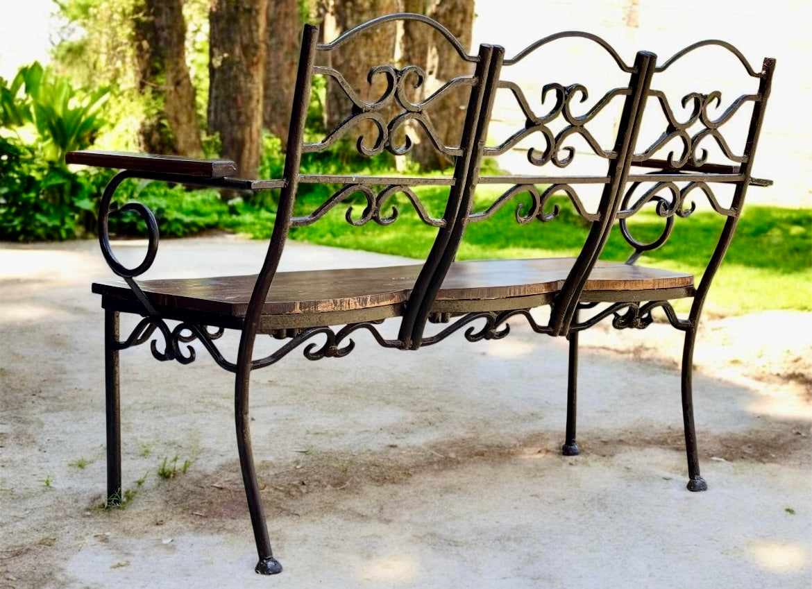 Banca De Hierro Forjado Y Encino Estilo Antiguo