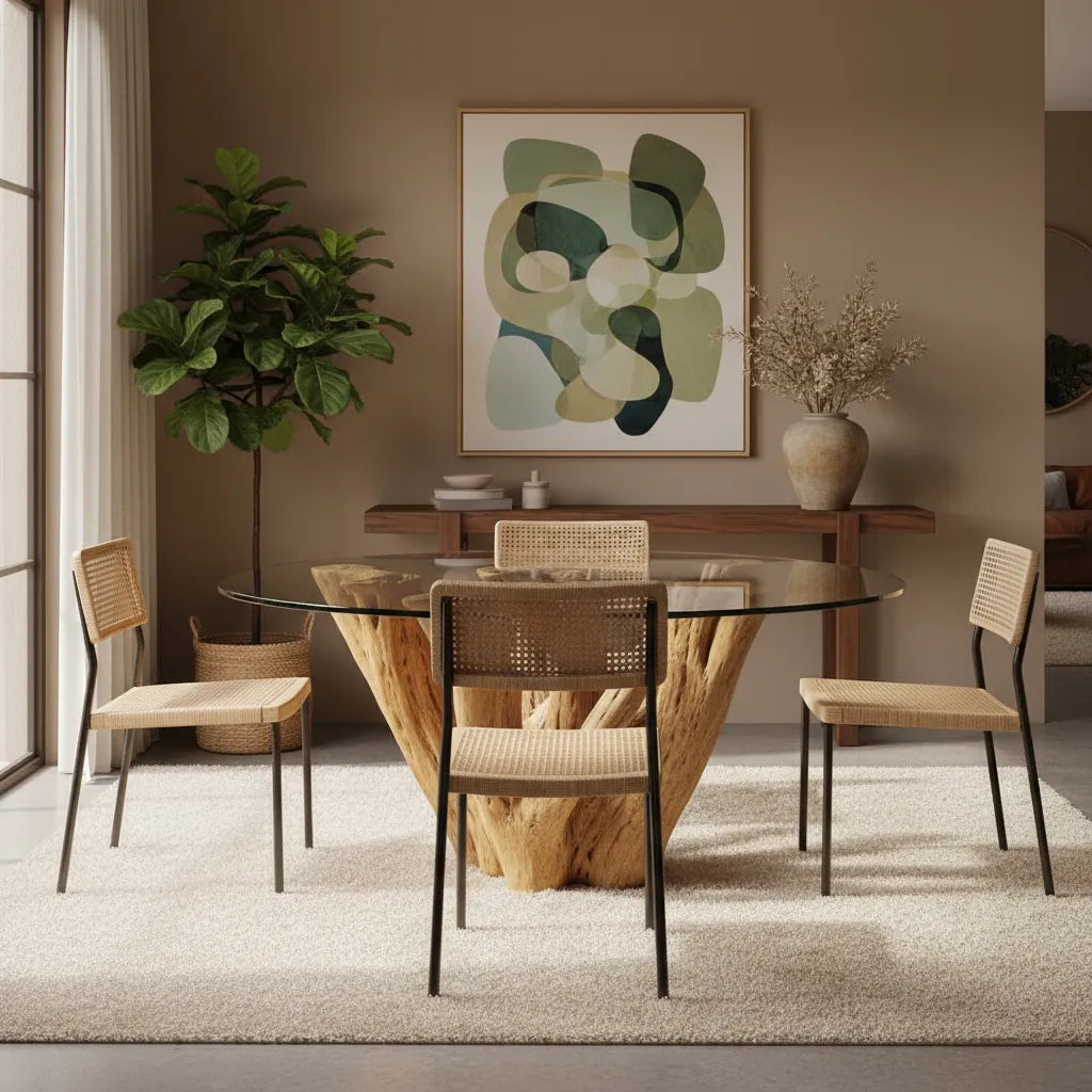 You won't find another dining table base in this style, much less with this quality. BEAUTIFUL AND UNIQUE PIECE. DON'T let them take it from you. It's made of original cactus wood that's over 100 years old, very strong, and has a special design.