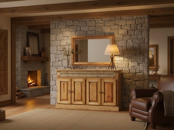 Handcrafted Buffet Made of Sustainable Wood and Tulle. Antique Style