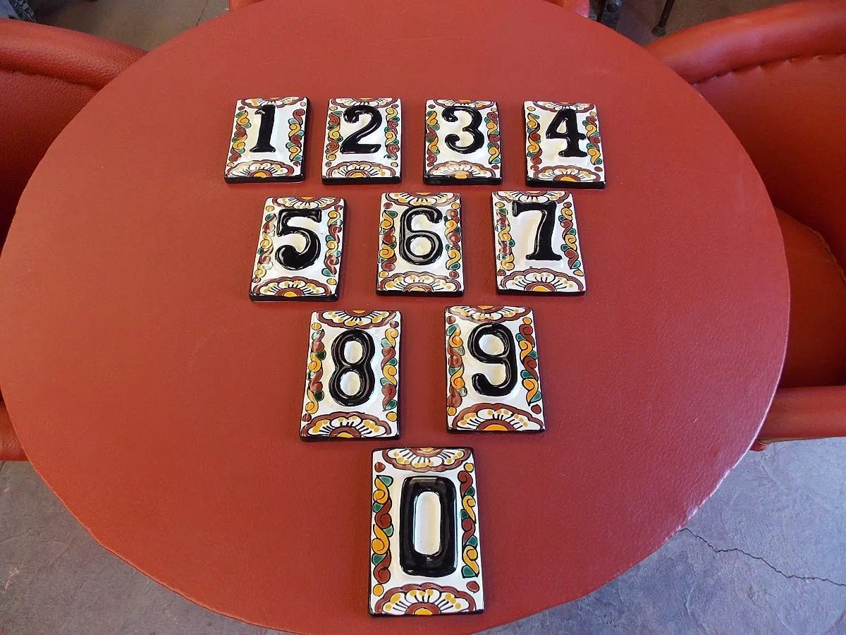 Hermosos Números De Talavera Fina Estilo Antiguo. 2 Piezas