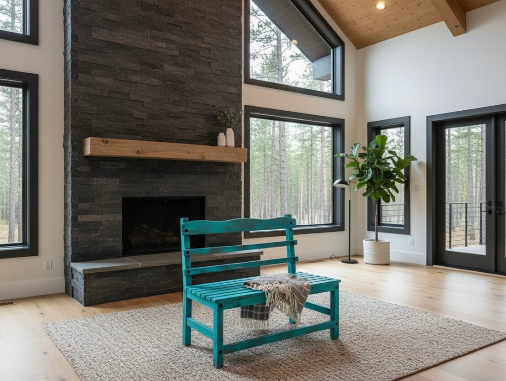 Silla Banca Artesanal 2 Personas Antiguo Turquesa Vintage