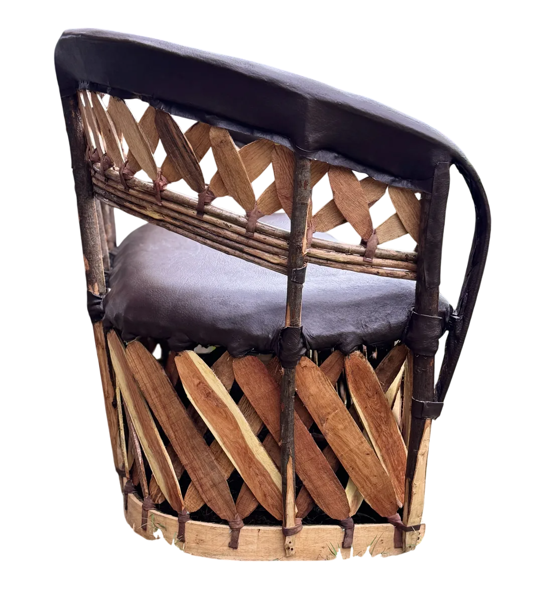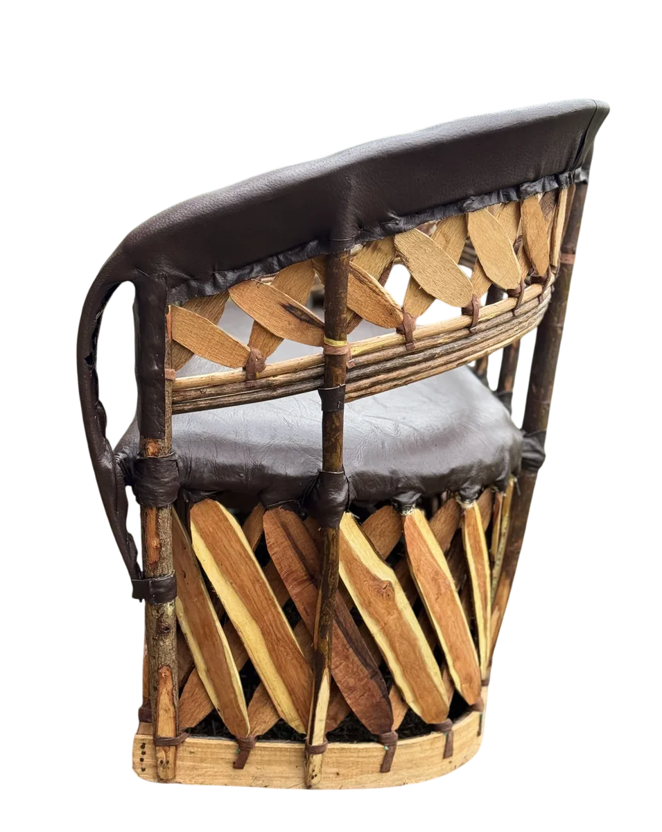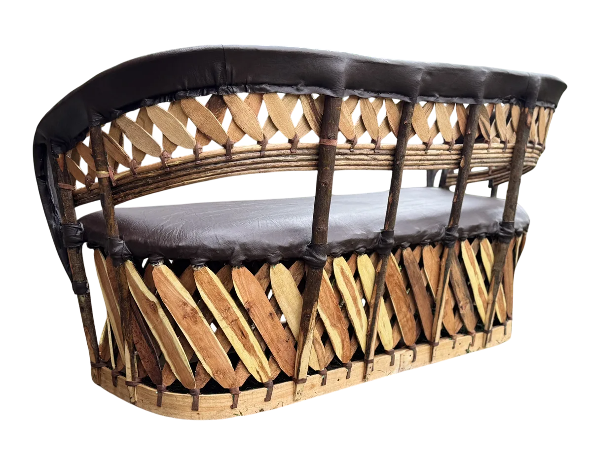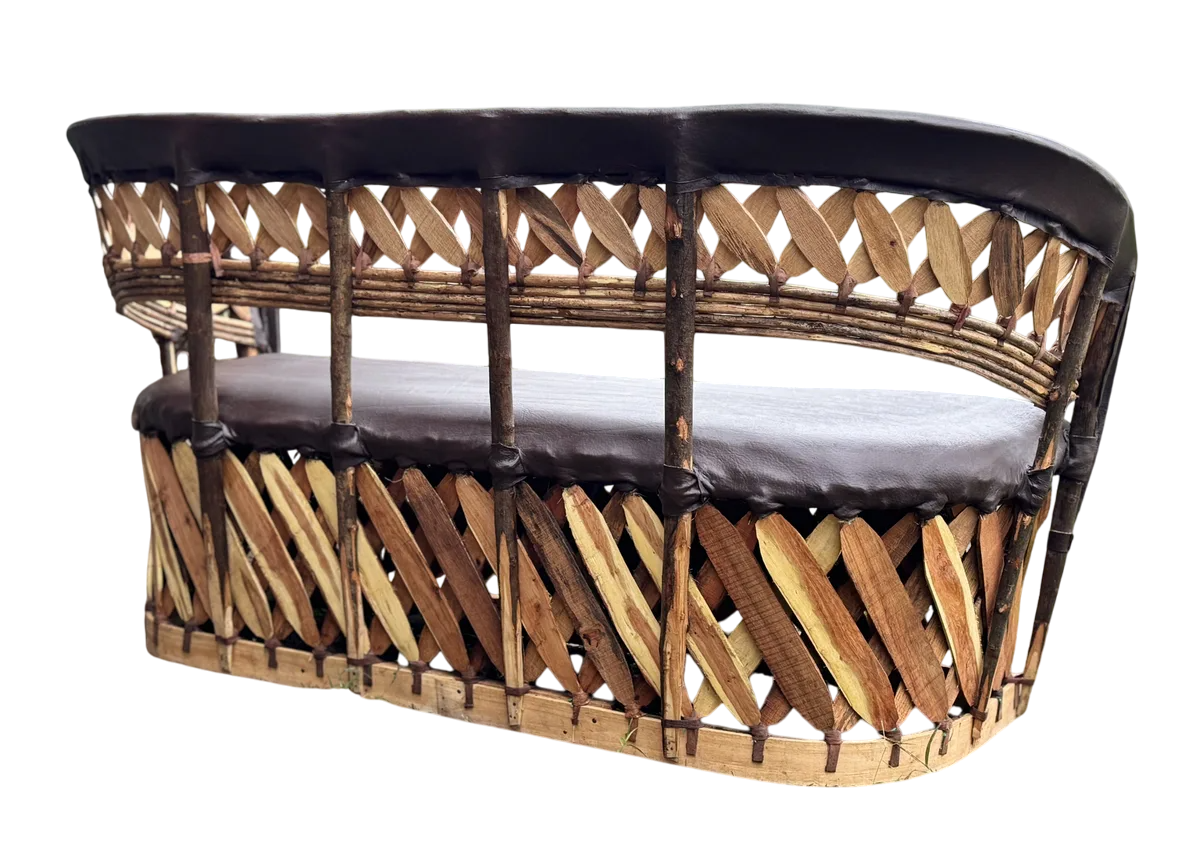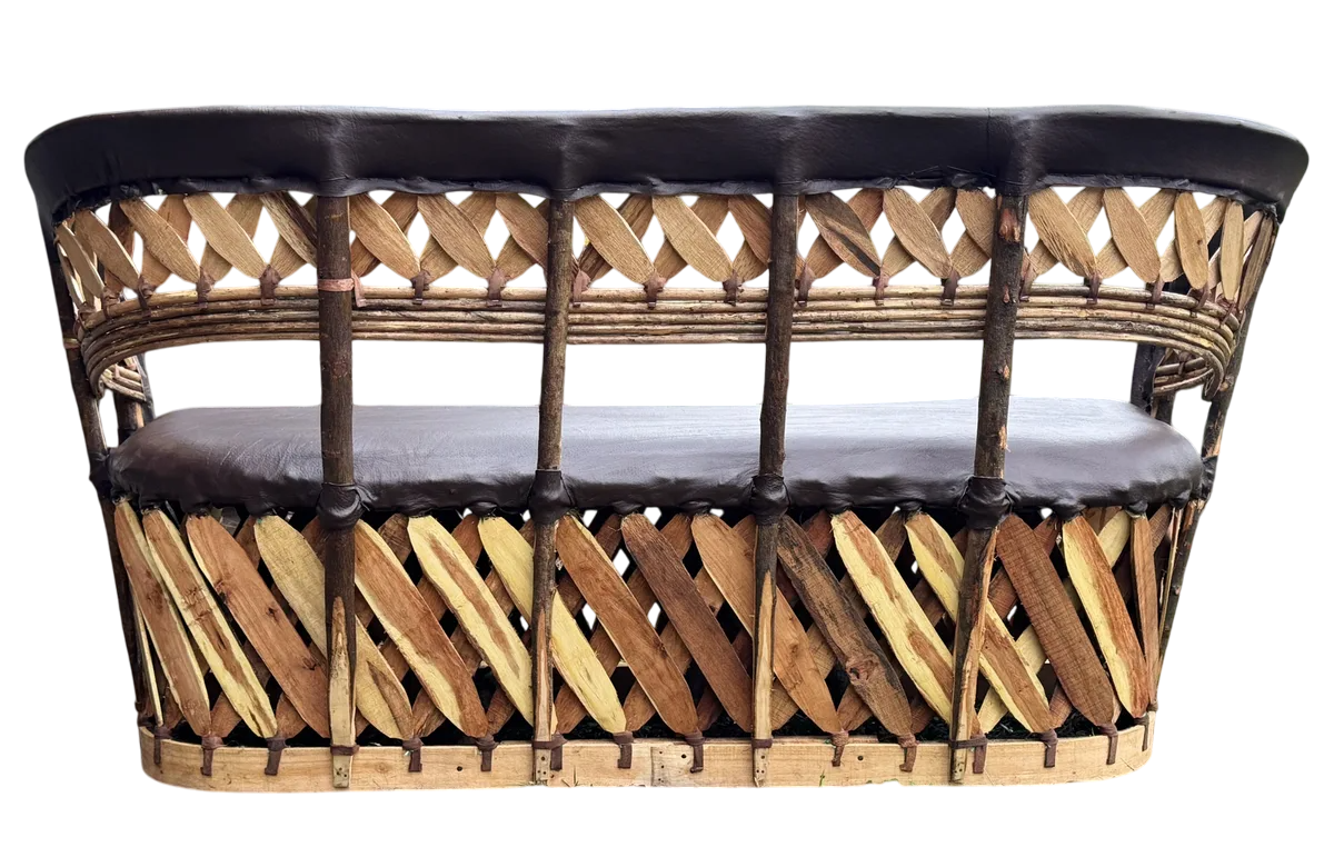 Sillon Love Seat 3 Personas Estilo Equipal Antiguo Estacas. Chocolate Piel