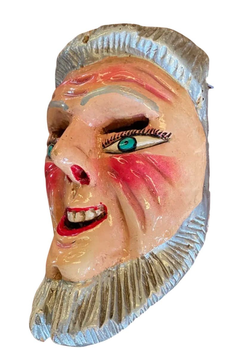 No encontrarás otra mascara de madera, en este estilo y menos con esta calidad, NO dejes que te la ganen, esta fabricada en madera antigua y pintada a mano. Este tipo de mascaras eran usadas en bailes tradicionales de diversos pueblos de nuestro país, y representaban al anciano con la vitalidad del joven. Eran talladas y pintadas a mano.