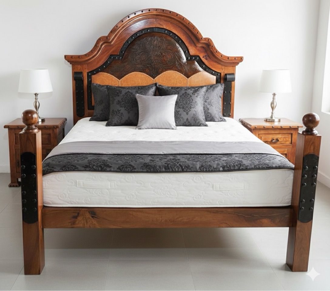 ¿Buscas darle a tu habitación un toque de estilo y originalidad? Tenemos la solución perfecta para ti. En Galería Tonaltecas Jaliscienses, te presentamos nuestra espectacular recámara Queen en madera de mezquite, con un diseño único que no encontrarás en ningún otro lugar. Cada pieza de esta recámara ha sido finamente trabajada a mano por expertos artesanos, lo que garantiza una calidad incomparable y un acabado perfecto. Además, los burós que incluye la recámara están decorados con hermosos detalles de hierro forjado, lo que los convierte en una pieza única y llena de personalidad. La cama, por su parte, te asegurará un descanso pleno y cómodo, gracias a su construcción robusta. Y todo esto en una sola compra, ¡no podrás encontrar una mejor oferta! Así que si estás buscando muebles de alta calidad y con diseños únicos, no dudes en visitar Galería Tonaltecas Jaliscienses. Somos especialistas en muebles y artesanías de la mejor calidad, y estamos seguros de que encontrarás en nuestro catálogo todo lo que necesitas para hacer de tu hogar un espacio lleno de estilo y personalidad. No esperes más y visita nuestra página web para conocer más detalles sobre esta espectacular recámara matrimonial y muchas otras piezas únicas que te estamos ofreciendo. ¡Te esperamos en Galería Tonaltecas Jaliscienses!