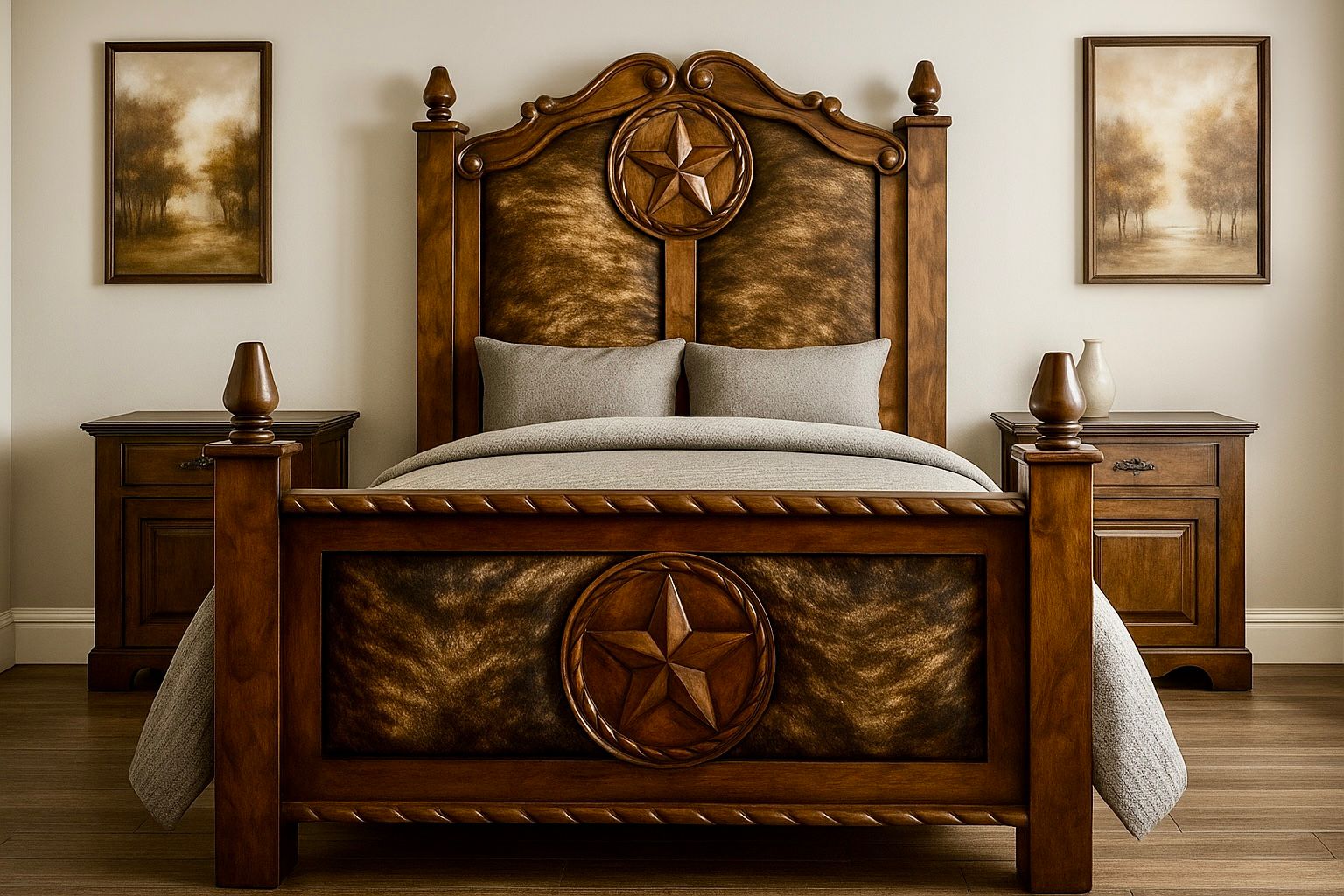Exclusiva Recamara Mezquite Estilo Colonial Con Piel Y Tallas