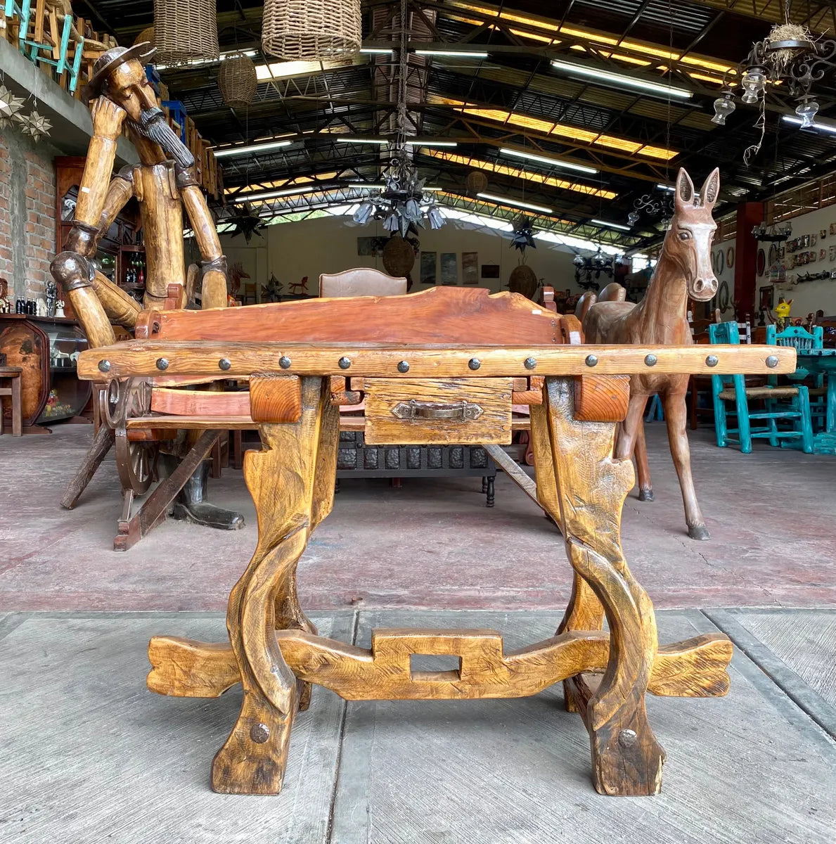 No encontrarás otra credenza igual, en este estilo y menos con esta con esta calidad, HERMOSA pieza NO dejes que te la ganen. Esta fabricada completamente a mano, su cubierta es parte de una puerta antigua de madera de hace mas de 100 años, puedes ver su forma y herrajes originales. Sus patas son yugos antiguos, que se usaron durante muchos años. !!!! ESTA CREDENZA TIENE UN ESTILO ÚNICO !!!! Esta pieza esta encerada y pulida a mano, ademas esta protegida con barniz marino. Este tipo de piezas nunca pierden su valor, al contrario lo incrementan año con año, lo que los convierte en una INVERSIÓN.