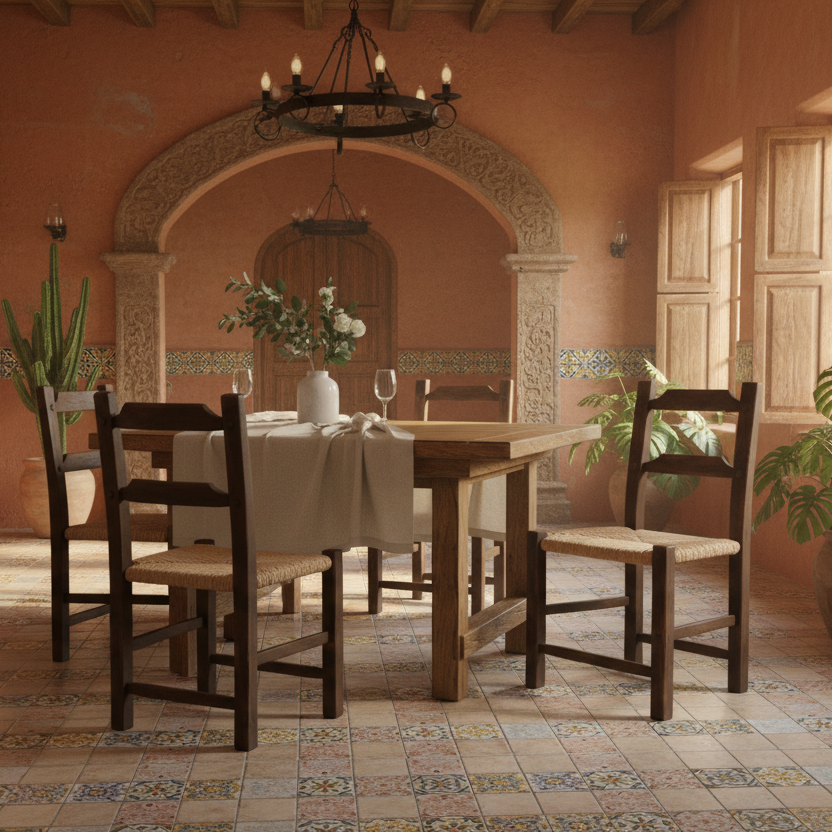 Silla Artesanal De Madera Sustentable Estilo Antiguo. Tule Natural Chocolate Tule Natural
